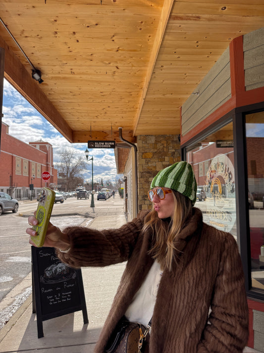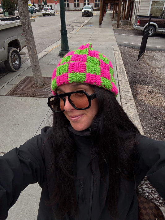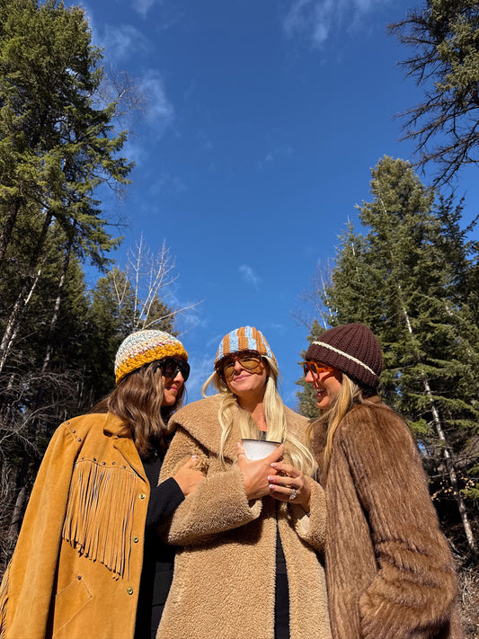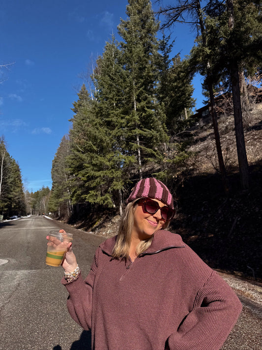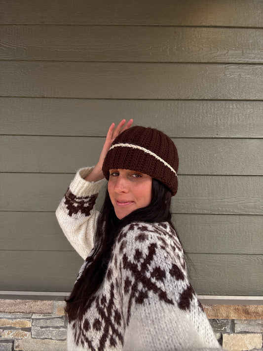 Pink & Brown Wide Stripe Chunky Knit Beanie