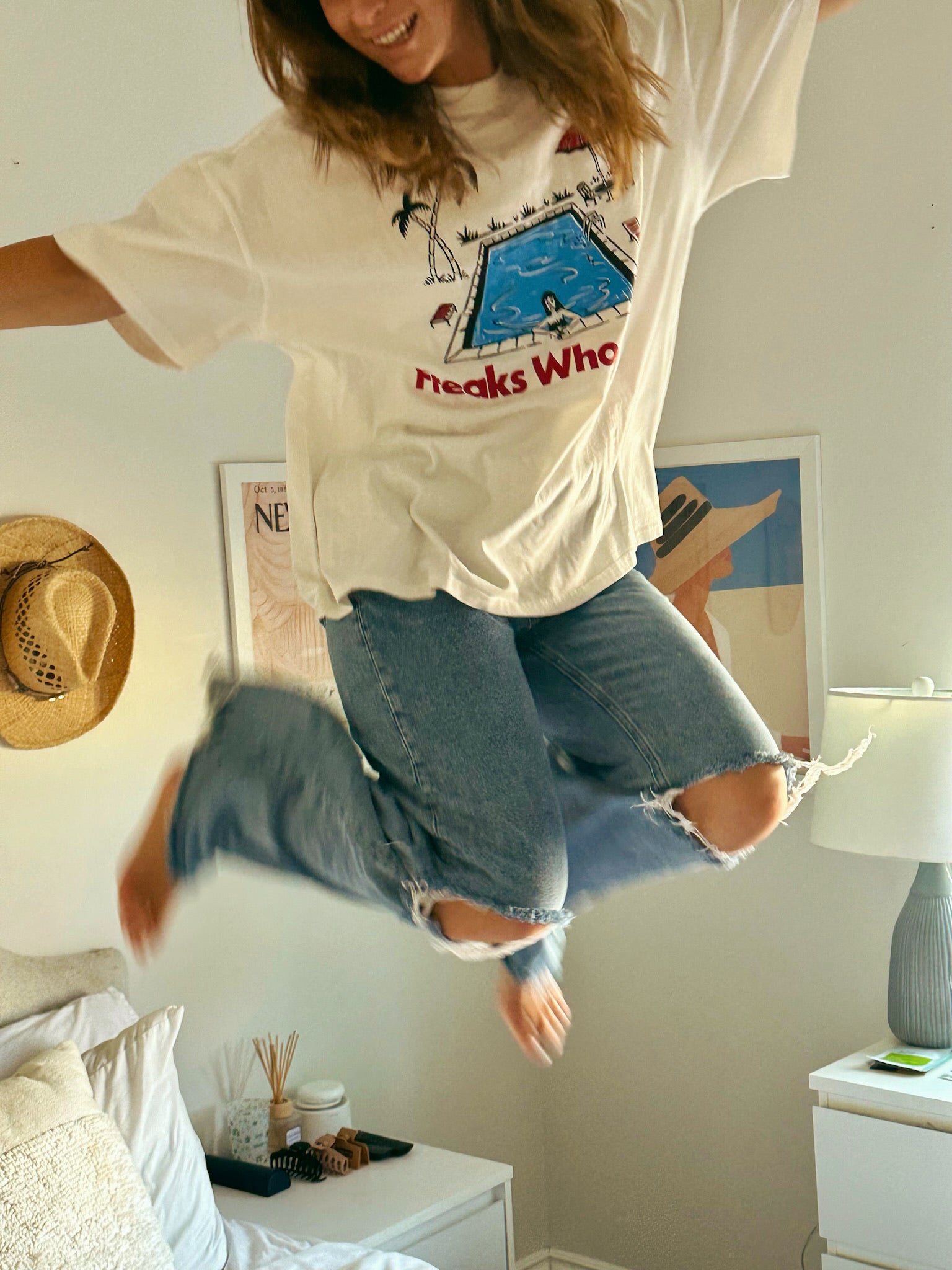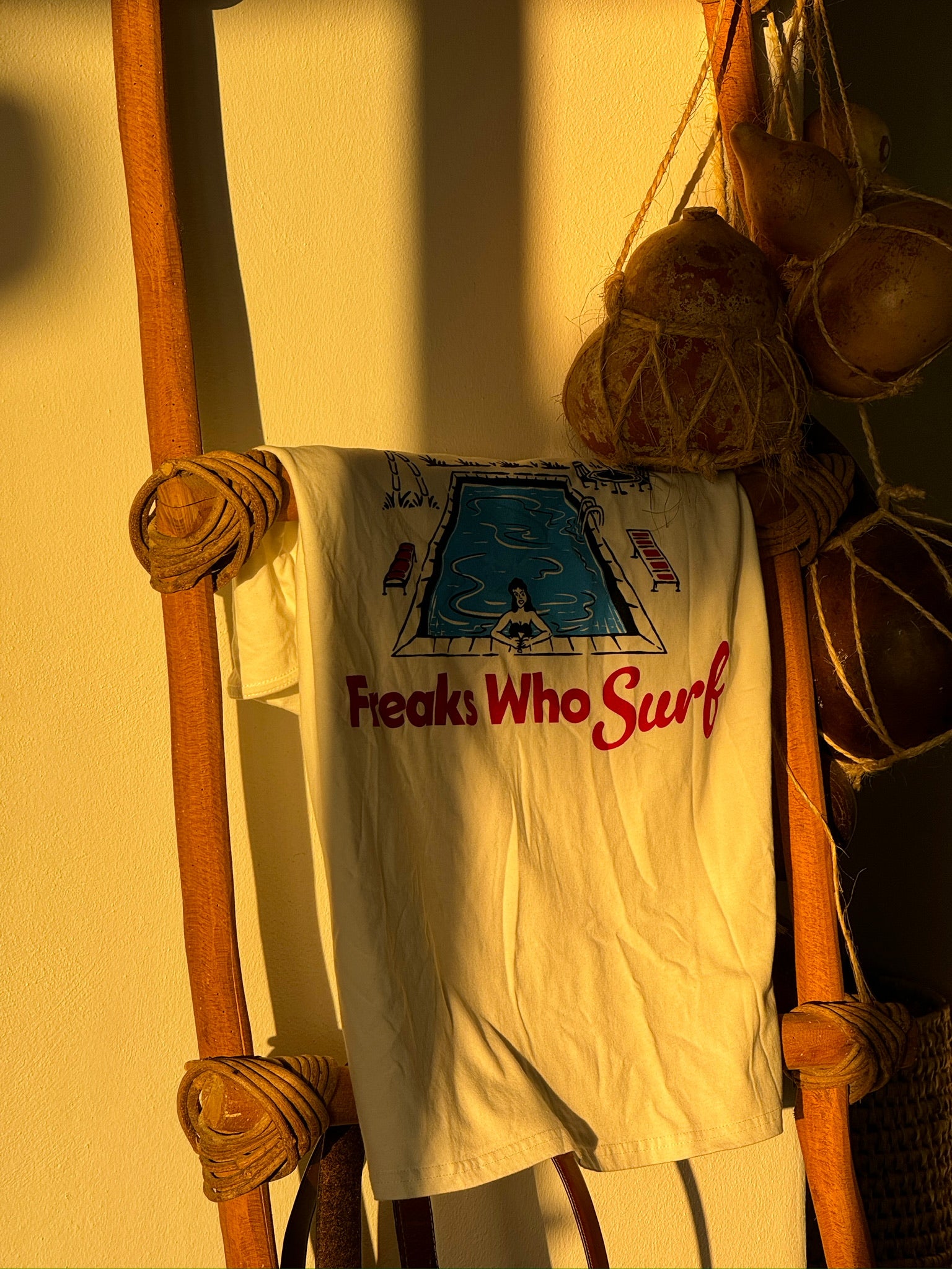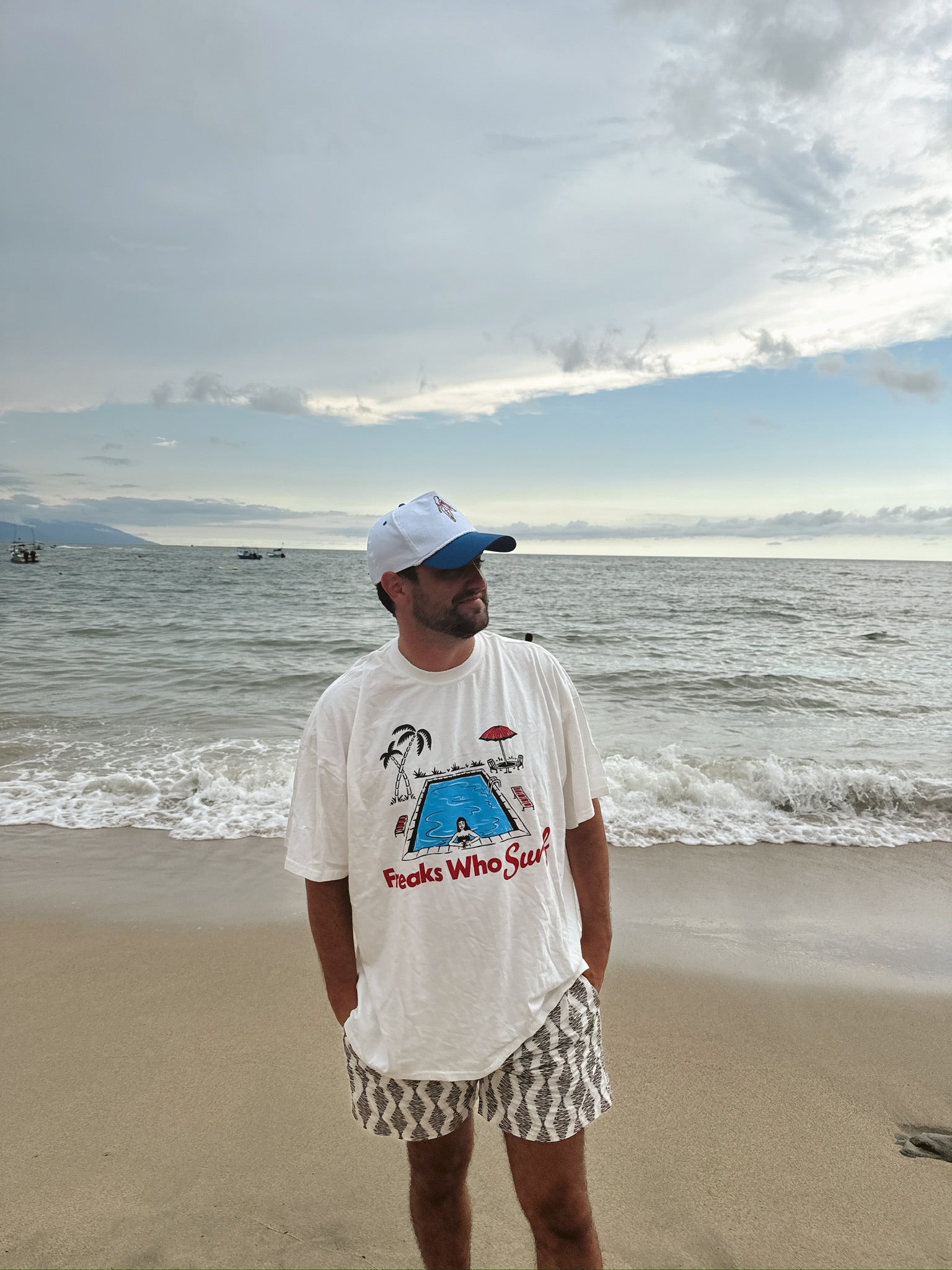 Our oversized t-shirts are the perfect staple for your cozy, comfy aesthetic. Handcrafted with breathable, cotton fabric, you'll absolutely live in this top. This t-shirt is white, with our "Freaks Who Surf" graphic screen printed on the front. Back of tshirt Is blank. Available in various sizes; quality details, and fit details below.