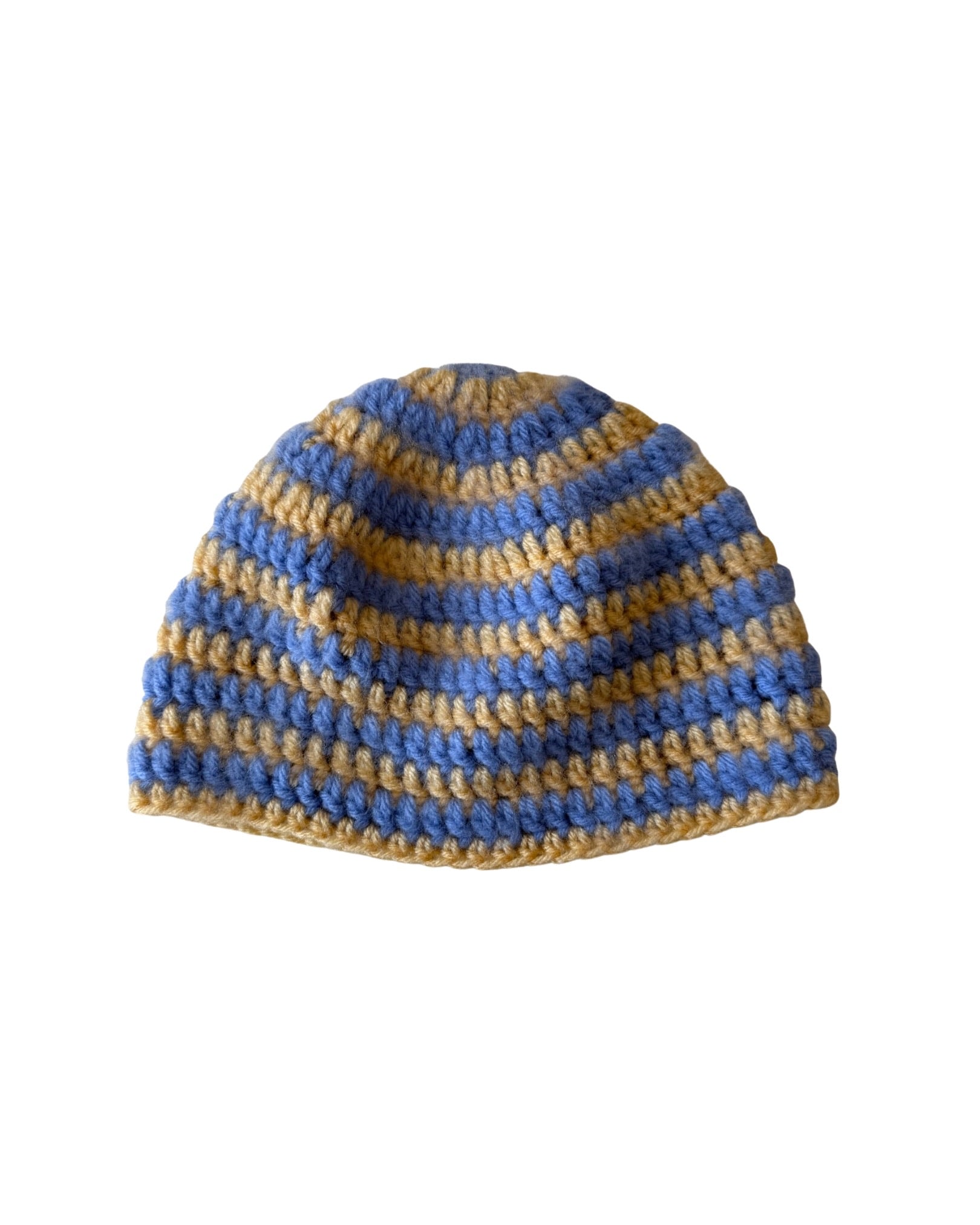 Light Blue & Yellow Striped Skull Cap Beanie