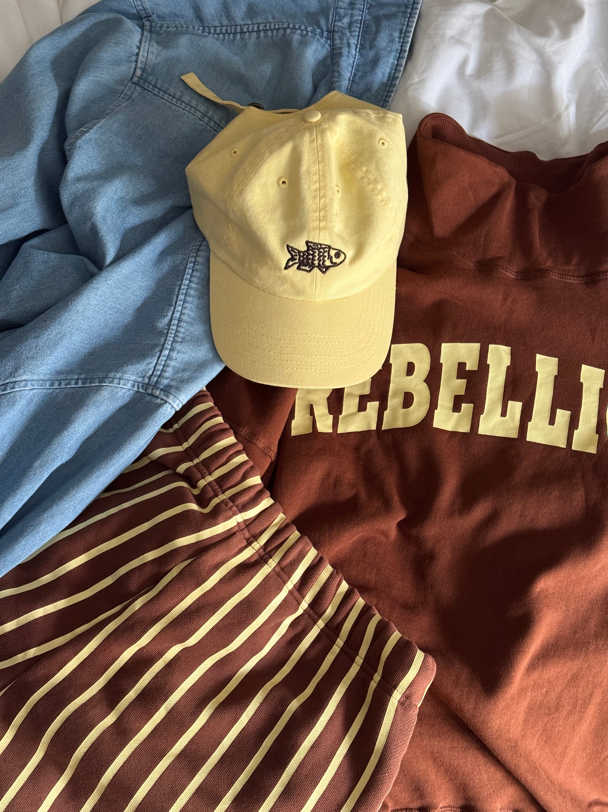 Low & mid-rise, relaxed fit shorts in a chocolate brown with butter yellow vertical stripes to elongate your legs. They are your new staple short; pairs well with everything, and you’ll never take them off. Heavy weight, 100% cotton, cozy, yet breathable.