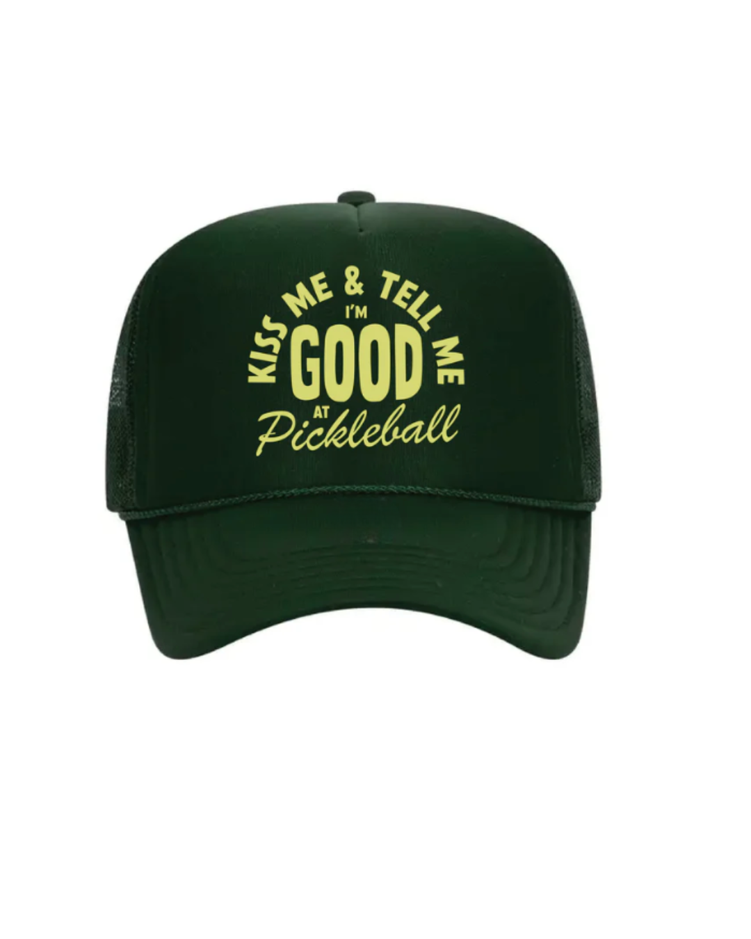 “Kiss Me & Tell Me I’m Good at Pickleball” is your new not-so-subtle hint in hat form. Deep green foam, lemon yellow text, and a structured fit that says: don’t blame us when you meet your husband with this on. Includes a 5-panel foam build, curved brim, and breathable mesh for pickleball and post-game smooches.